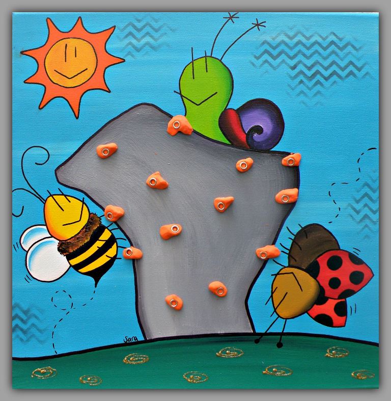 En esta ocasión pinté a tres de nuestros amigos escalando en un boulder como el que tienen en el roco.