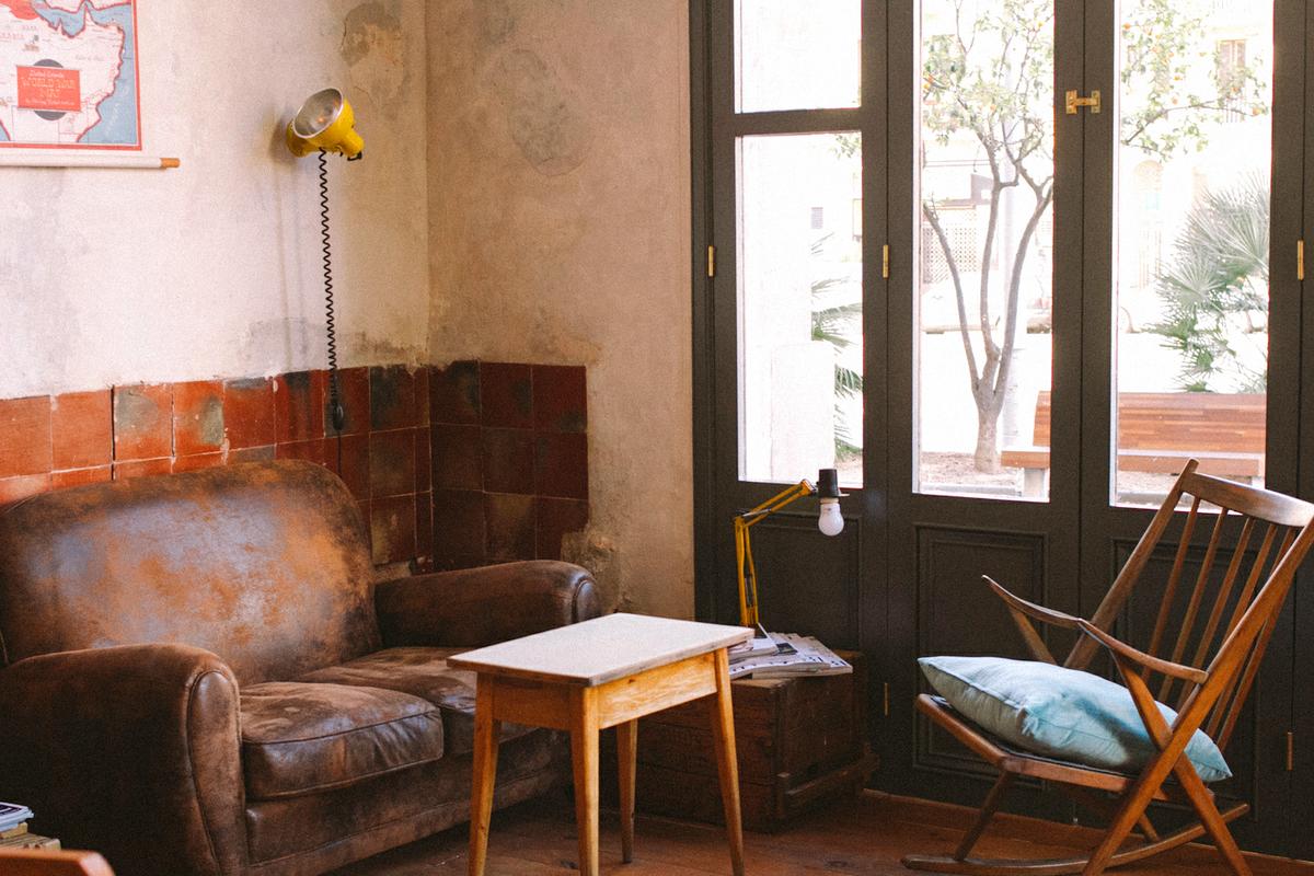 Cómo podéis ver el local tiene mesas y sillas de estilo convencional pero también dispone de una zona con sofás, una mecedora e incluso algunas cajas antiguas a modo de mesa dónde poder estar más relajado y pasar un buen rato charlando. Dos grandes espejos y un mapa vintage invaden las altas paredes y causan una sensación de profundidad.