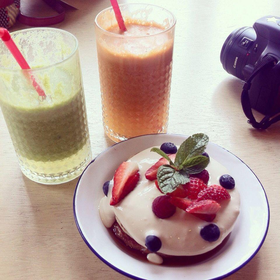 Y no puedo dejar de hablar de sus pancakes, sus pasteles buenísimos de la muerte y de sus zumos de frutas naturales. Me encanta todo! Y de salado... os recomiendo el bikini...mmmm... creo que es el mejor que he probado nunca.