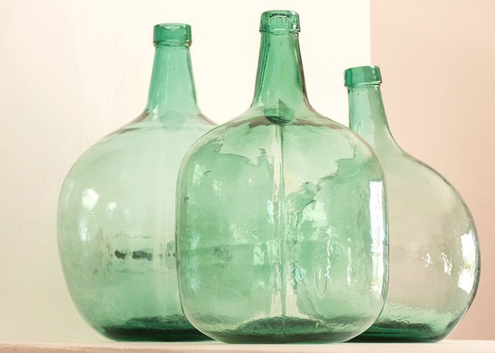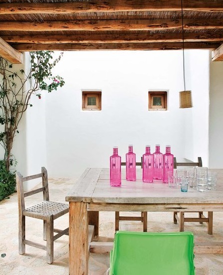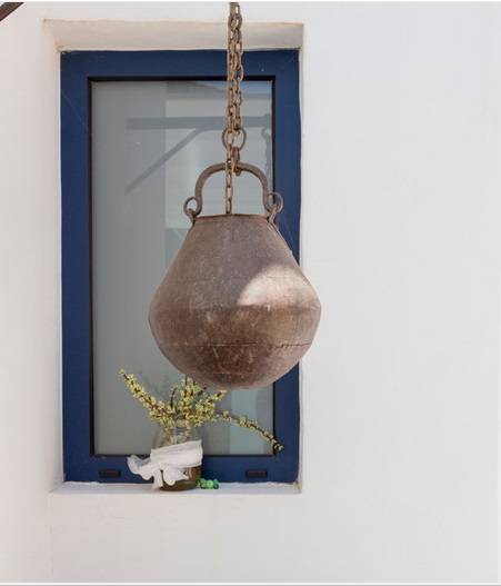 La cerámica y el vidrio también aparecen a menudo en la decoración ibicenca, ya sea en platos, jarrones, ánforas, damajuanas o quinqués. Me encanta!!!