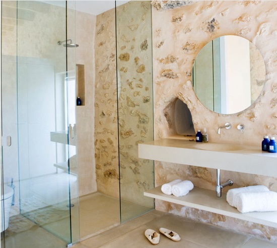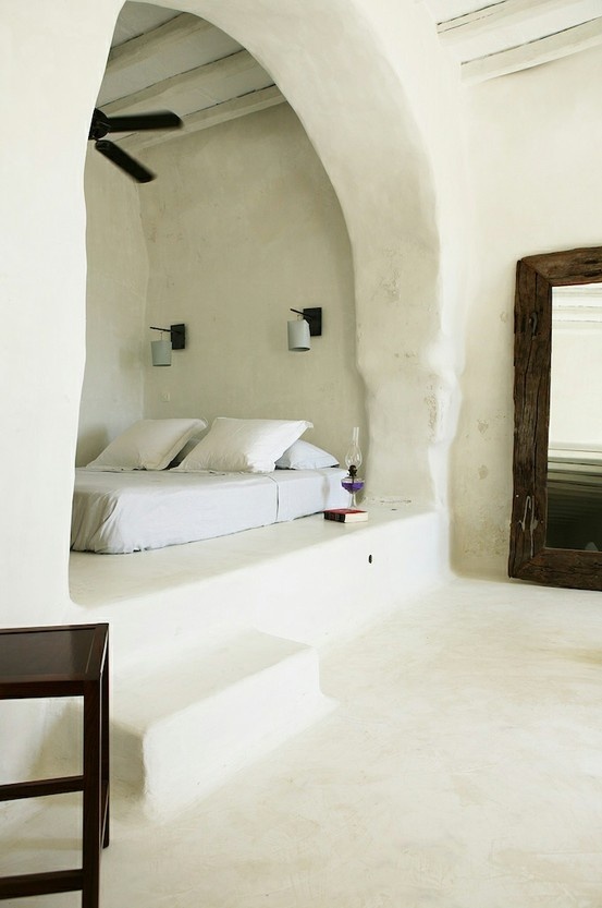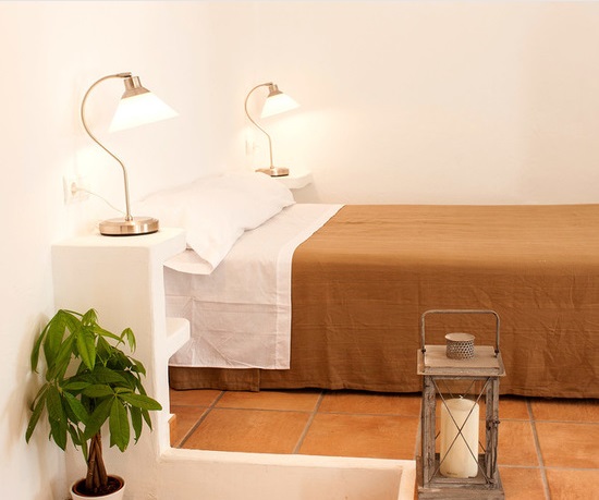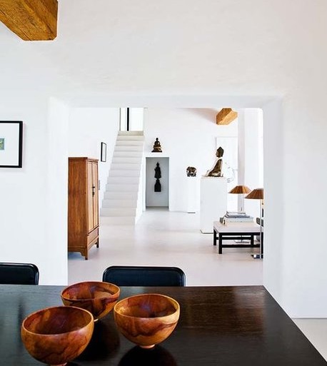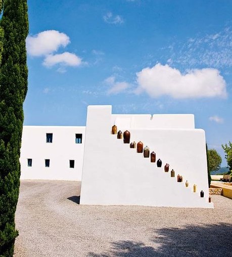 Las casas tradicionales de Ibiza son blancas encaladas, como las andaluzas, con muros gruesos que sirven para aislar el calor en verano y el frío en invierno, de acabados curvilíneos, donde la imperfección el non finito se convierte en belleza.