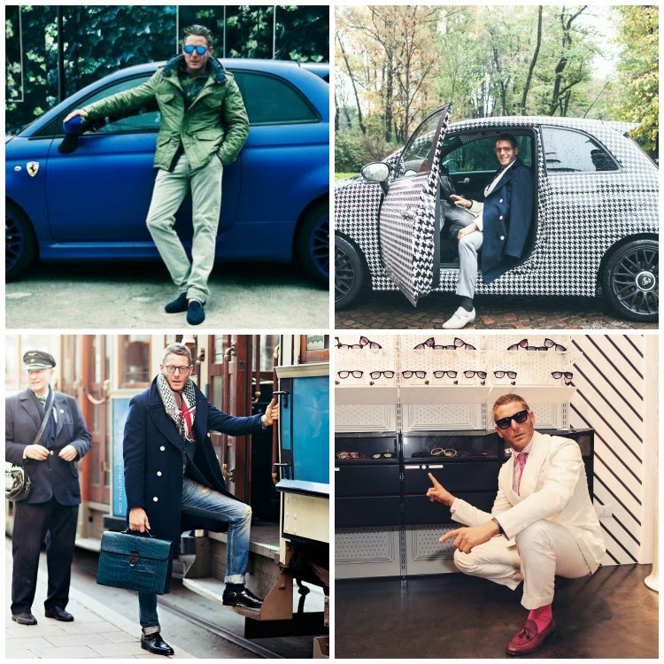 Ha creado una marca y empresa llamada Italia Independent, que entre otras cosas, fabrica gafas, de ver y de sol (él, como ya véis, no sale prácticamente sin ellas) que próximamente se podrán encontrar en las tiendas Scalpers (marca que es muy acorde a su estilo por otra parte), aunque Scalpers no ha sido la única colaboración de este hombre torbellino, ha tenido otras muy sonadas, sobre todo la de Gucci, en el lanzamiento del Fiat 500 versionado por la casa italiana , y la de la línea tailor made de la firma para hombre.