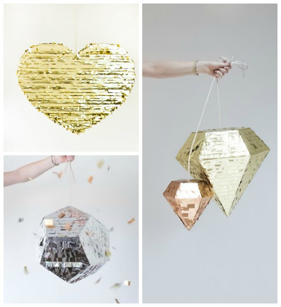 Otro clásico de las fiestas es la piñata, pero en esta ocasión lo vamos a cubrir de glamour al igual que todos estos diy en tonos brillantes. Si te encuentras con tiempo y ganas de crear esta piñata dorada en forma de corazón en Studio diy encontrarás el paso a paso.