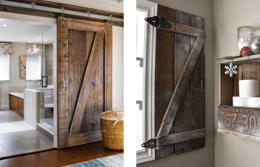 Las Puertas Correderas tipo granero son una increíble opción para los baños rústicos.