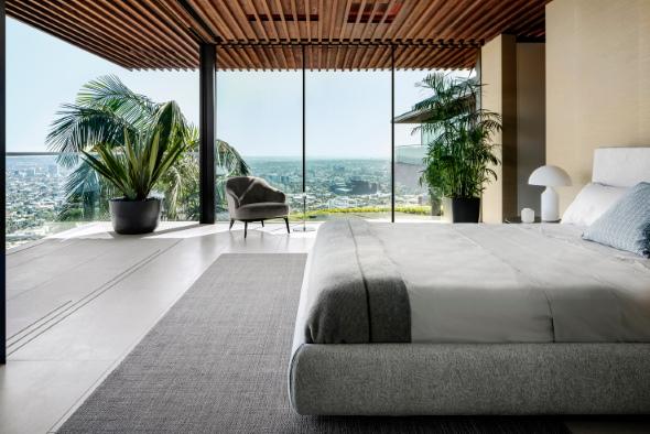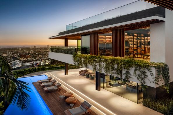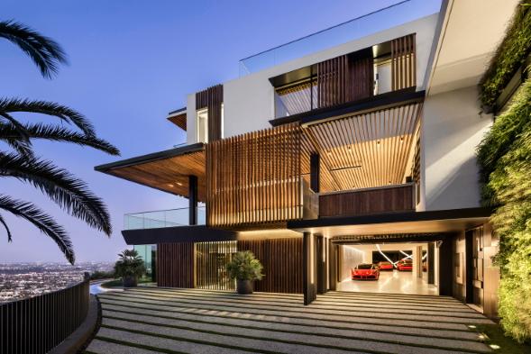 La construcción de esta casa fue realizada en un punto estratégico de Los Ángeles, y tienen una visión de 300º de toda la ciudad. El diseño de su fachada es su principal identidad que une perfectamente la casa con su contexto.La construcción al ser realizada sobre una ladera, para crear algunos espacio se tuvo que realizar excavaciones así es como se realizo el garaje con espacio para 12 coches. La casa cuenta con 1687m2 y fue realizada en el año 2019.