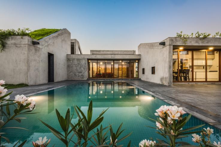 La construcción de la siguiente casa fue realizada en terrenos agrícolas, apartado de la ciudad, es una maravillosa casa de lujo con una hermosa piscina, los arquitectos del diseño son Misa Arqchitects.El enfoque que le dieron al proyecto fue unir el verdor del cesped con el azul del cielo mediante esta maravillosa casa.