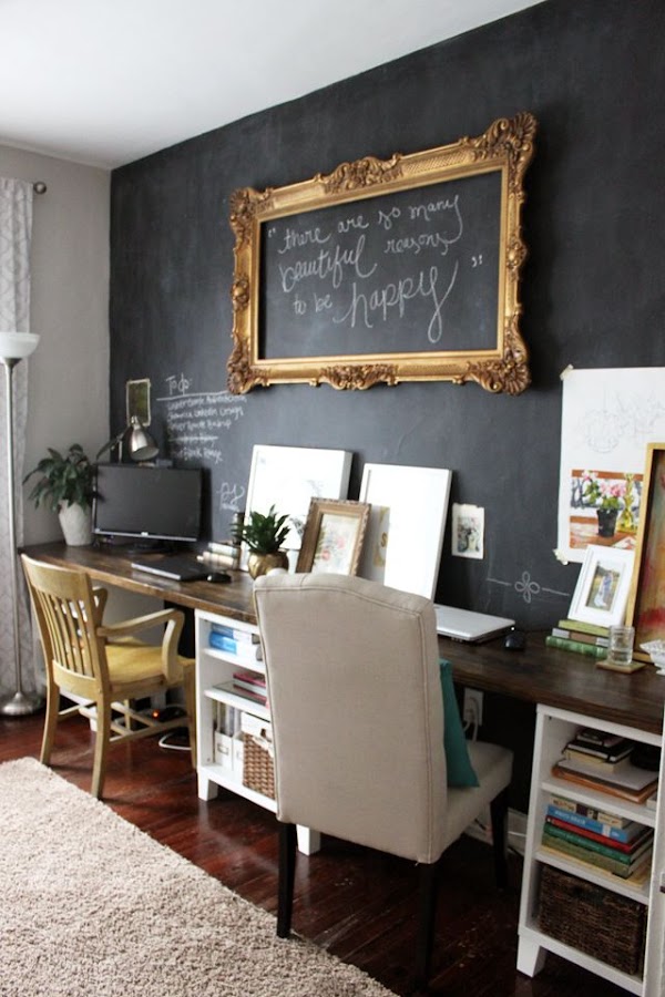 La solución tan sencilla de poner unos muebles de Ikea y encima una tabla larga y que se convierta en este sitio de trabajo o estudio, perfecto para dos personas, es una solución bonita y práctica y económica también.