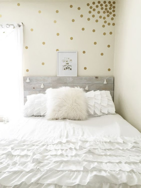 Otra opción para dar un cambio en nuestras paredes es esta. Si no queremos pintarlas enteras, los polka dots son una buena opción para hacer un gran cambio con muy poco como nos muestran desde acuatrolados.com: