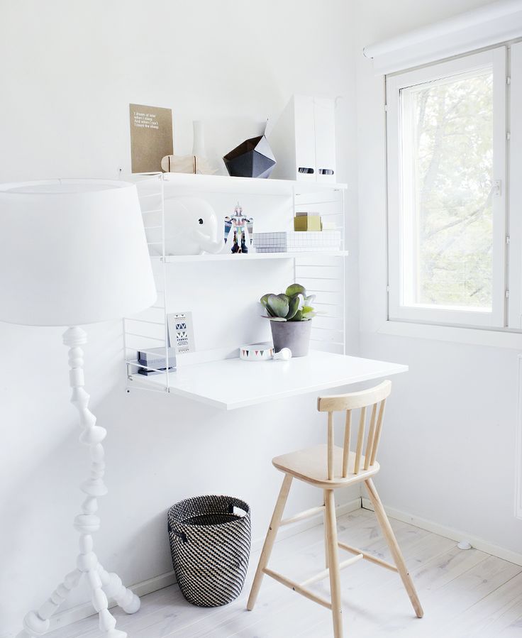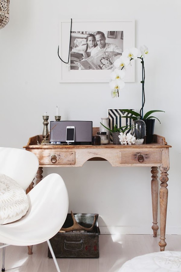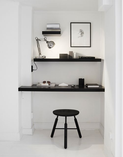 Es cierto que la luz natural es mucho mejor para leer, trabajar, etc. por lo que si podemos incorporar el espacio de trabajo cerca de alguna ventana mejor que mejor, intentando aprovechar sino alguna otra mesa como la del comedor, o algún aparador o cómoda. Sin embargo en ciertas ocasiones los pasillos que suelen ser zonas de paso entre la zona de día y la zona de noche se convierte en el lugar ideal para colocar una mesita, o incluso integrarla en un armario. Por último y lo más común cuando no se tiene esta habitación de estudio es integrar en el dormitorio el espacio de trabajo o compartir tocador y mesa de estudio.