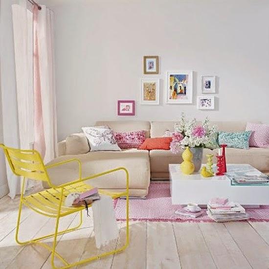 Aquí viene lo mejor porque sin duda es una de las combinaciones más bonitas, relajantes y además que queda genial no solo en dormitorios infantiles o de bebé el salón puede estar lleno de estilo con una bonita gama de colores pastel en amarillo, rosa, mint y azul.