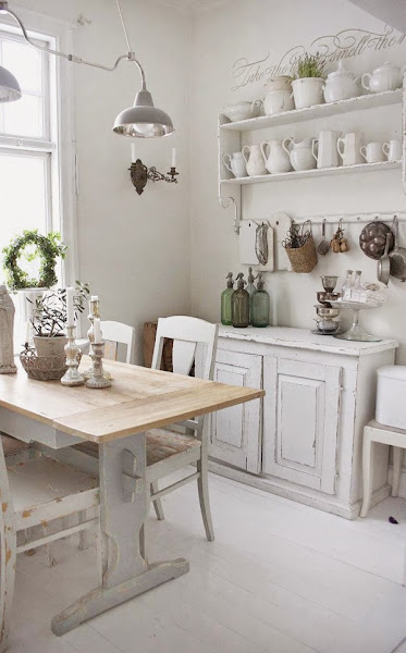 Da igual el tiempo que pase, este estilo siempre será un clásico de las cocinas blancas. Una estética atemporal que logra sacar el máximo partido a este color de siempre. Además permite combinarla con elementos tan diversos como paredes de ladrillo, madera, plafones industriales, mobiliario vintage o retro, etc. Además, siempre puedes recurrir al menaje de cocina, a las vajillas y las cristalerías para potenciar ese aire romántico.