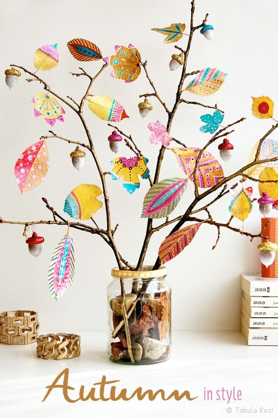 Pinta las hojas de colores y decora con purpurina y pintura dorada y tendrás algo tan bonito como ha echo Tabula Rosi