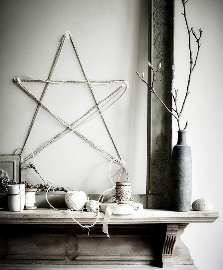 Imágenes inspiradores con tela de saco en servilletas, en "moñas" para decorar regalos, en cojines... E imágenes inspiradores con muchos cordeles de diferentes grosores, color y hasta forma... No os encanta la estrella de Navidad (habéis visto ya las novedades de IKEA y las de ZARA HOME? hecha con cordón y washi??? Estos pequeños rincones, llenos de guirnaldas y detalles muy personales, son de los que más nos gustan. Estáis de acuerdo??