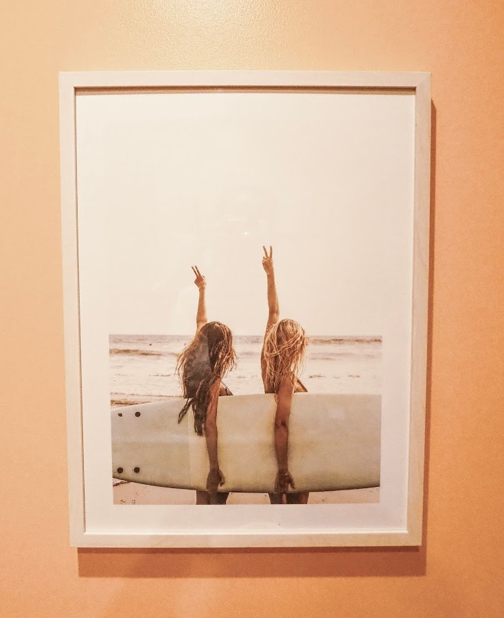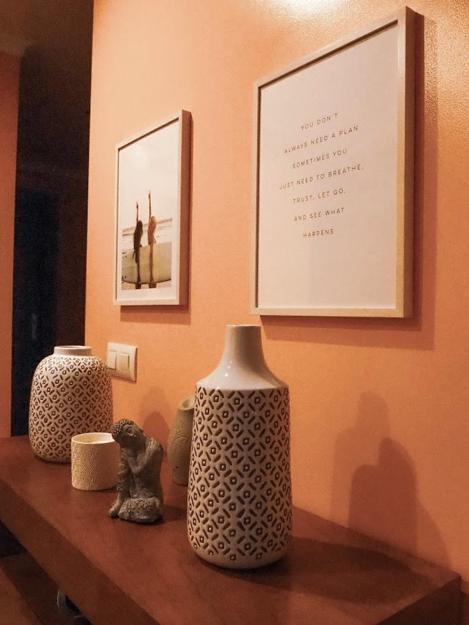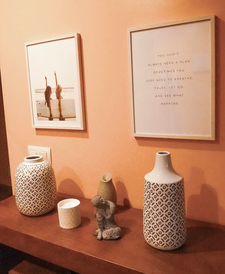 Cambiando totalmente de tercio, hacía mucho tiempo que me pedías a través de Instagram, que hiciera un Home Tour. Realmente y como siempre digo, a través de las RRSS no sólo hay gente buena, también hay personas que nos desean mal. Es por esta razón, que algo tan personal para mi como es mi hogar, soy reacia a mostrarlo. No obstante, Desenio me ha dado la oportunidad de renovar un poco la decoración de mi casa. La firma especialista en cuadros por excelencia en Internet, ha entrado en mi casa para darle el toque divertido. Hakuna Matata y una lengua enorme de jirafa, ponen el punto diferente a un salón bicromo, creando una atmósfera distendida y cómoda. Lo mismo ha ocurrido con la entrada a mi casa. En este caso, el cambio aun ha sido más notorio. Me explico. En este rincón, tenía los tradicionales cuadros familiares, demasiado vintage para el estilo que me identifica. Es por ello, que opté por darle un toque de frescura con dos cuadros de inspiración surfera.