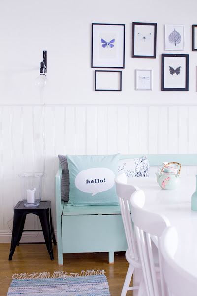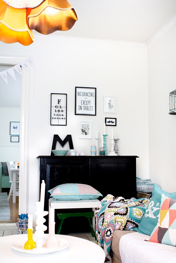Todas estas fotos son de la casa de una blogger a la que le perdí la pista en el 2013 Harligt Hemma, su casa aunque tiene cosas de "abuelita" es muy inspiradora y juega como nadie con la luz natural, los estampados y los colores pastel.