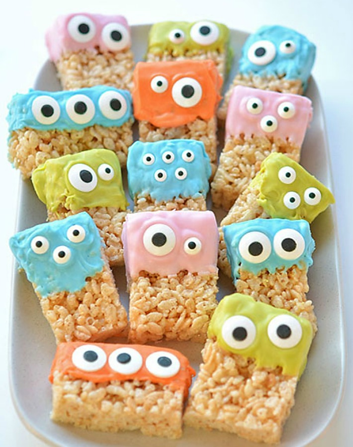 Aunque reconozco que a mí no me gustan las barritas, a mis dos hijos les encantan. Lo cierto es que me parece una opción diferente y original para celebrar una merienda de Halloween. One little project nos muestra la receta y elaboración de estas barritas energéticas monstruosas.