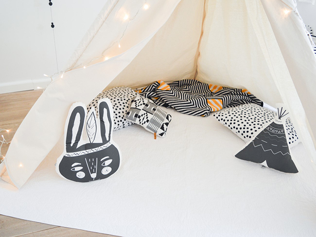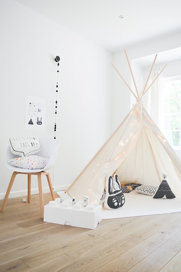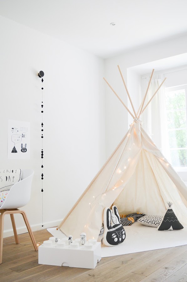 Lo mejor de los tipis es que se pueden montar y desmontar en un momento, unos cuantos cojines en el suelo, mantas y listo, podéis tener a los más pequeños controlados en cualquier rincón de casa.