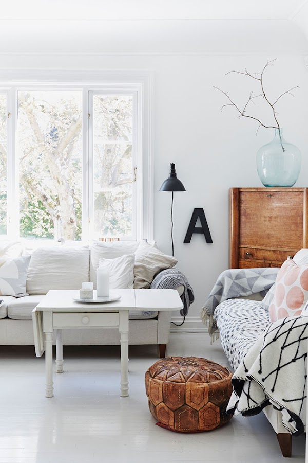 Esto es precisamente lo que me trasmite esta casa de campo nórdica, con un paraje envidiable y una terraza cubierta para el uso y disfrute todo el año. Aunque lo mejor sin duda además de su luz natural, su mezcla de estilos y su decoración es la cantidad de muebles recuperados que se pueden ver en todas sus estancias, desde mesas de centro hasta el fantástico banco de líneas clásicas del comedor, una casa bonita a rabiar donde flores naturales, damajuana o guirnaldas de bombillas dan cabida a un conjunto para disfrutar en plena naturaleza.