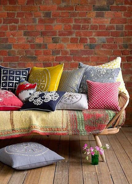 2. Tapar discretamente: si la cosa es grave, pero todavía parte de la tapicería puede ser visible, el arte de colocar mantas/edredones/pareos y cojines puede ser la mejor opción... Aquí unas cuantas ideas: