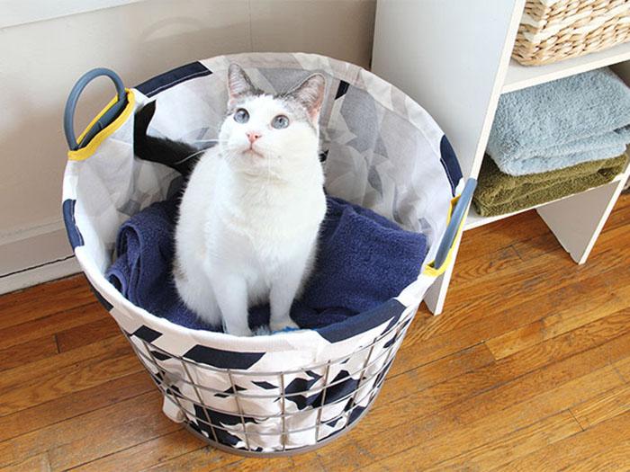 Fuente: Shelterness Si encuentras en una tienda de trastos y cosas de segunda mano un cubo de alambre, puedes convertirlo en un decorativo cesto para la colada. Eso sí, necesitarás forrarlo de tela en el interior. Elige un diseño original y te quedará precioso.
