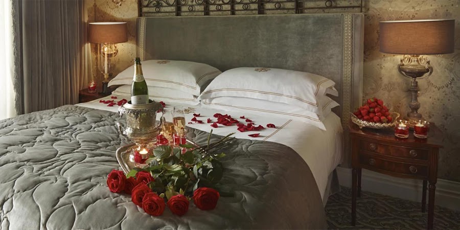 Si estás pensando en proponerla, el Día de San Valentín es el mejor día para hacerlo. Toda la habitación llena de globos y muchas flores con una tenue luz romántica justo encima de la cama, ramos de flores, vino tinto y ropa de cama blanca con un enorme corazón de pétalos de rosa y en medio de él, un hermoso anillo es el sueño de todos. niña.