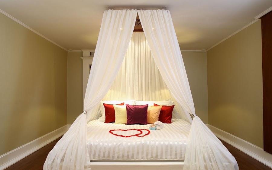 Ir con una decoración sencilla no hará que el día sea menos especial. Depende del gusto de su pareja y sus gustos y disgustos por la novedad. Ir con ropa de cama blanca y de encaje simple con muchas almohadas blancas y rojas hará que este lugar sea cómodo y acogedor. Haga que sea más dramático y acogedor agregando una cortina dramática a la cama y agregue la sensación de un gesto romántico. Además, agregue un hermoso corazón con pétalos de rosa y complete la decoración simple pero elegante.