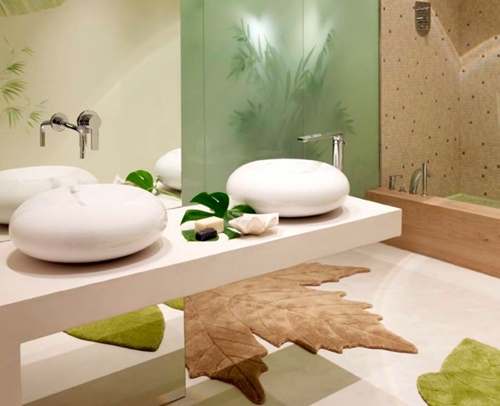El baño debe ser una parte de nuestra casa donde nos encontremos relajados y en armonía con nuestro propio cuerpo. El estudio de diseño Barasona nos propone un baño inspirado en la naturaleza que invita al descanso. Las alfombras con forma de hoja son increíblemente originales.