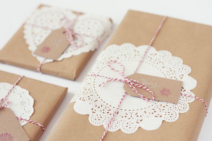 O hacer paquetes muy románticos usando puntillas y encajes, o con blondas de papel que también le quedan fenomenal: