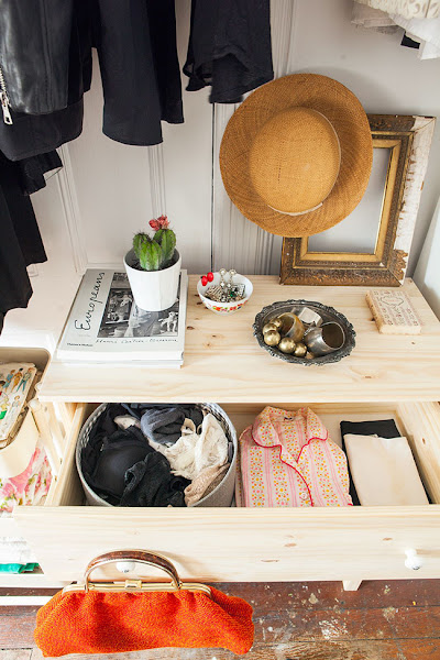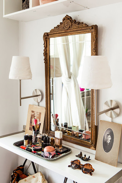 A nuestra habitación le hemos hecho un pequeño "vestidor low cost" y navegando encontré este otro de la casa sueca que además tiene HASTA TOCADOR! me pareció una idea estupenda para compartir con vosotros, si buscáis algo económico y que sea funcional, barras de armario atornilladas a la pared, una cómoda de cajones y baldas son los elementos principales usados en este rincón coqueto y al que no le falta detalle.