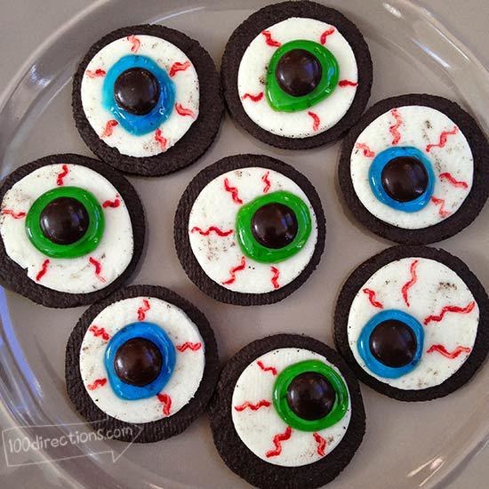 El paso a paso para realizar estos globos oculares está aquí: http://www.100directions.com/oreo-cookie-eyeballs-halloween-treat-diy/