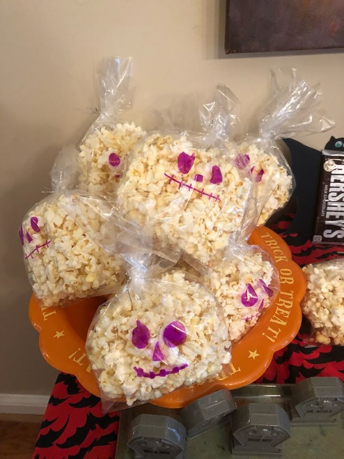 1. Palomitas terroríficas: Rellena pequeñas bolsas con palomitas y con un rotulador dibuja caras cómo éstas. Te sirven de decoración y de picoteo !