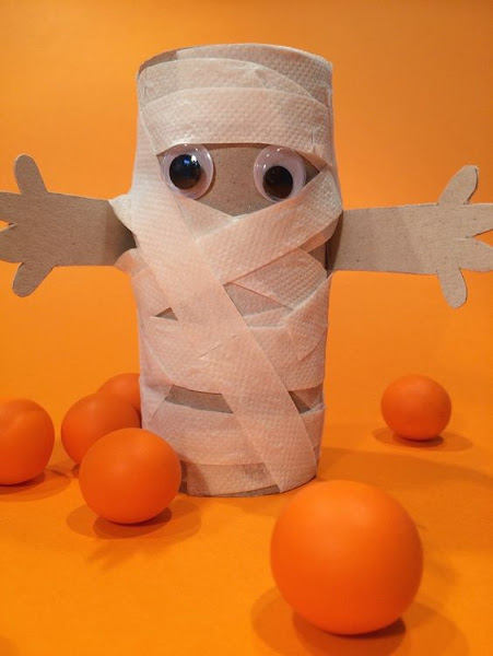 2. La Momia: Acuérdate de guardar algunos cartones de los rollos de papel del baño, y conviértelos en momias!! Si tienes niños en casa diles que te ayuden, se pasarán un rato muy divertido!