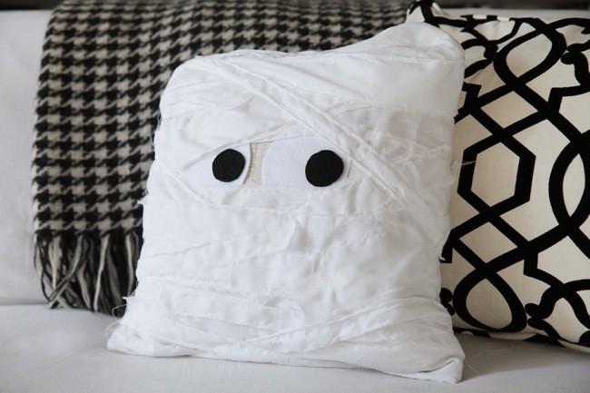 6. Cojín momia. Un DIY muy fácil de hacer, lo explican aquí, nos quedará un cojín la mar de simpático para nuestro salón.