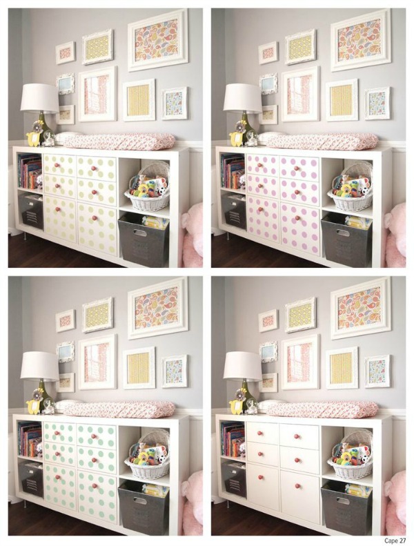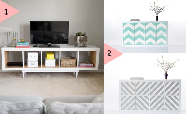 Decórala o pinta la estantería con motivos o colores propios del ambiente del que la hagas formar parte. Hazle dibujitos con washi tape, pinta las puertas, ponle patas, cambia los tiradores... lo que te apetezca para integrarla en el ambiente en que te apetezca colocarla.