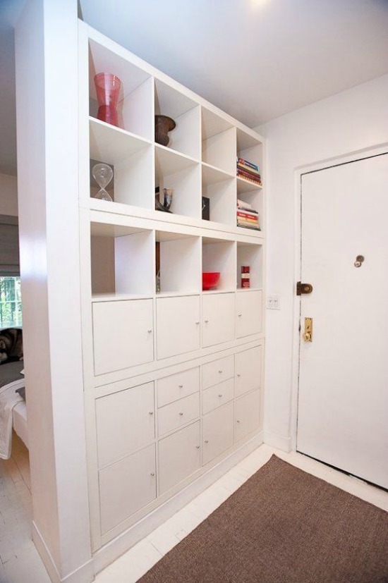 Hay mil formas de hacerlo pero me apetecía mostrarte esta. Estupenda y original idea para separar ambientes con amplia capacidad de almacenaje mientras lo haces. Se opta por almacenamiento cerrado en la parte inferior mientras se deja abierta la parte superior para aprovechar la luz natural.