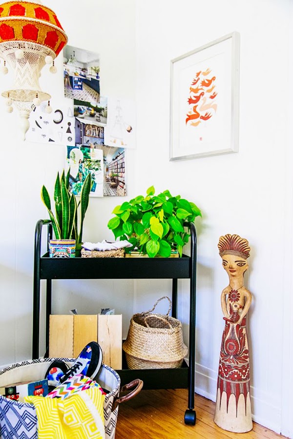 - Decora con detalles de estilo étnico: lámparas, figuras de madera, detalles dorados...