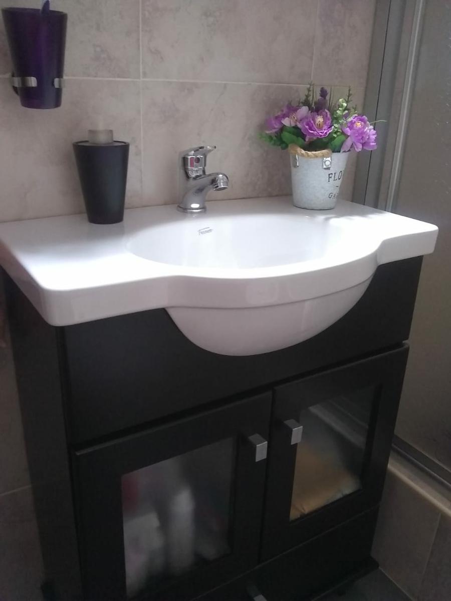 Para el lavamanos decidí un color marrón bien oscuro, con mesada de losa y pileta del mismo material. Por último: canilla monocomando, ya que, a mi preferencia, es más práctica y estética.