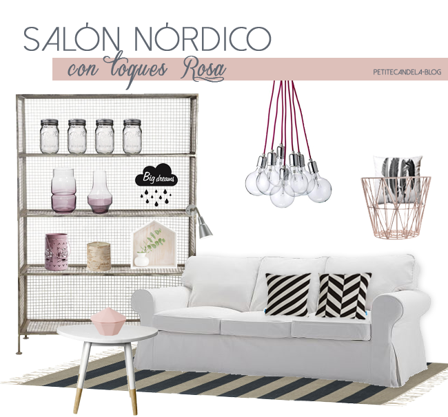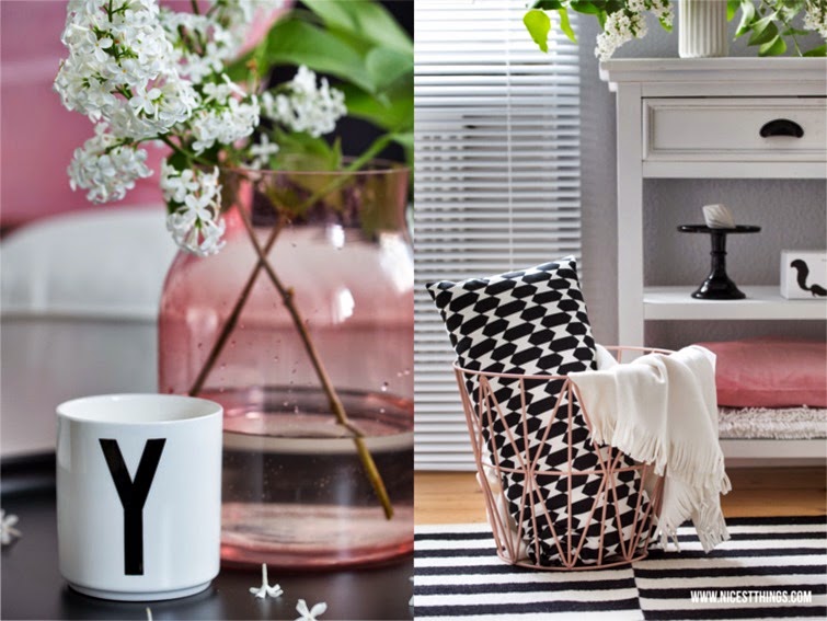 Como siempre decimos (que ya somos cansinas con esto), base de color neutra (blancos y negros fundamentalmente) y el día que estamos en plan "happy-darle-aire-nuevo-a-la-casa" es suficiente con comprar unos cuantos objetos en el color (o colores, dependiendo del grado de colorín que tengamos en vena!) que nos apetezca. En este caso vamos con el rosa: portavelas , textiles (ese cojín rosa-palo tiene pinta de ser un amor), un jarrón de cristal en el tono, láminas con detalles en la gama y alguna otra cosa más que tengamos en casa, o podamos hacer en plan manualidad, y... espacio resuelto! Nos vamos de rositas??? (sí, el chiste es para matarnos... buahhhhhh!).