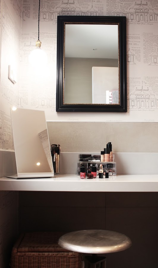 Como casi a todas las mujeres, me encanta maquillarme, de hecho tengo un montón de potis, no una gran colección como algunas chicas, pero si un número considerable, y me encantaría tener mi rinconcito con todo ordenadito, y donde poder sentarme y maquillarme tranquilamente, y no de pie en el baño, como lo hago y tenerlo en un cajón de la cajonera de plastiquin que compramos para el baño. Así que otro futuro deseo, junto el vestidor (si lo sé... ¡¡soñar es gratis!!) para cuando tengamos nuestro piso, ya que en este no tengo espacio para ponerlo. Los tocadores, representa la feminidad, ya sean de aspecto moderno, rústico o clásico. Siempre con un asiento cómodo y un gran espejo, con una buena iluminación, son claves para conseguirlo. La decoración como más nos guste, a mi gusto sencilla, un jarrón con unas flores frescas y mostrando algunos de nuestro perfumes, son suficientes para desprender toda esa feminidad al conjunto.