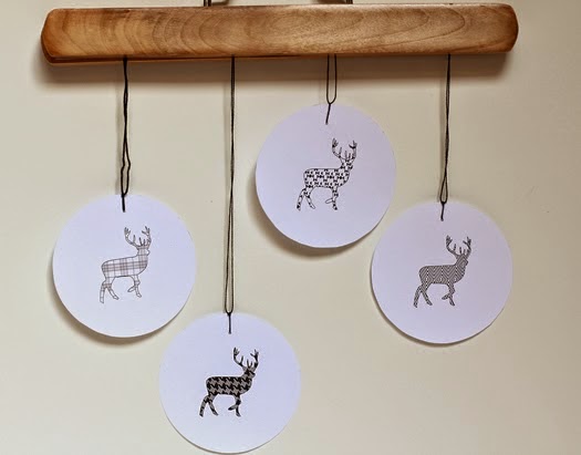 El quinto adorno navideño lo puedes realizar en escasos 5 minutos, lo que tardas en imprimir los cículos con dibujos de renos y colgarlos en esta percha pantalonero de madera......¿original y creativo verdad?
