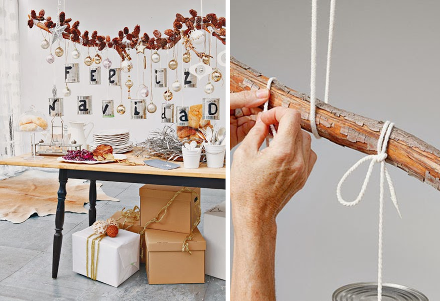 Para el tercer diy necesitaremos una rama de árbol, piñas, latas y cordel, con todo esto podremos crear una guirnalda muy ecológica para sorprender a todos estas navidades. Si quieres ver el proceso de elaboración, el paso a paso te lo pone muy fácil.