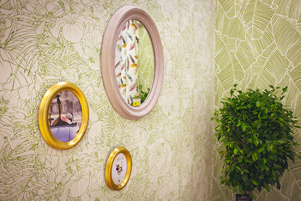 En este caso la composición fue de espejos, otra forma muy original de llenar una pared vacía