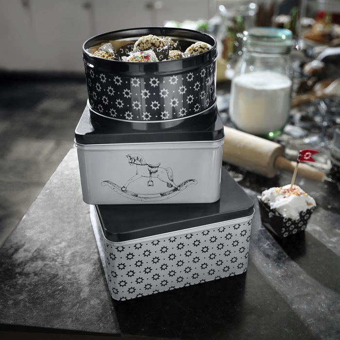 Uno de los espacios en los que IKEA se centra durante las celebraciones navideñas es la cocina, con accesorios y complementos para cocinar, textiles, cajas, moldes..... Como aperitivo nos muestra estas cajas decoradas en blanco y negro. Seguro que en breve tendremos muchas más novedades para cocinar