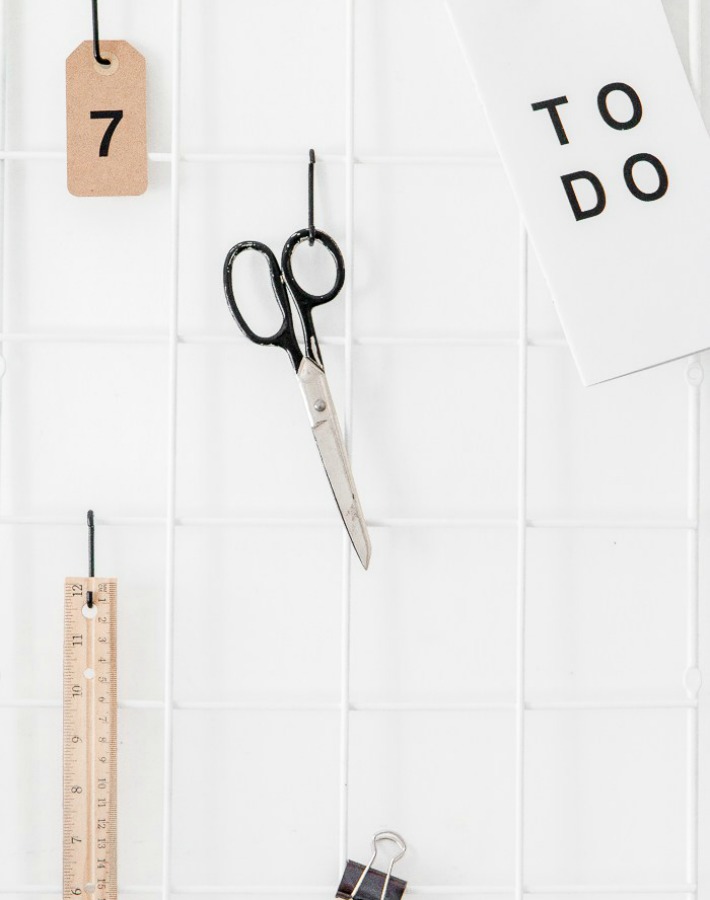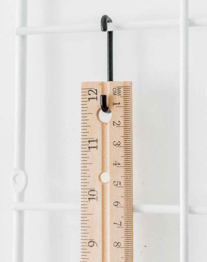 Ahora con unos ganchos y clips colgamos nuestro material de oficina o estudio de nuestros hijos; unas tijeras, regla, notas, fotografías ...............¡Así de sencillo es este IKEA HACK!