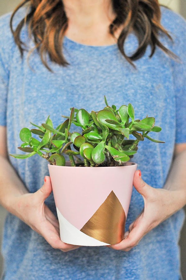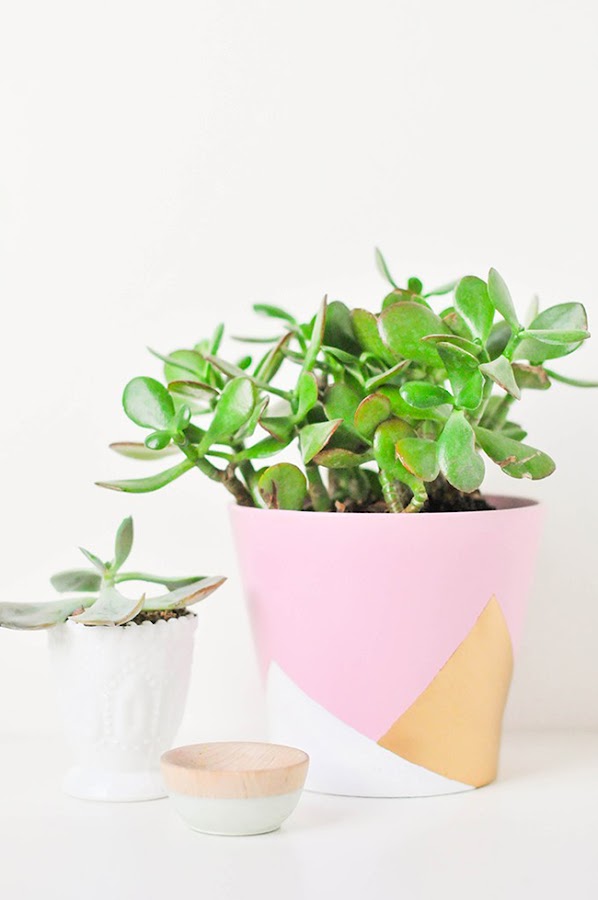 Una vez esta todo pintado procederemos a quitar las cintas de pintor y disfrutar de nuestro nuevo macetero costumizado