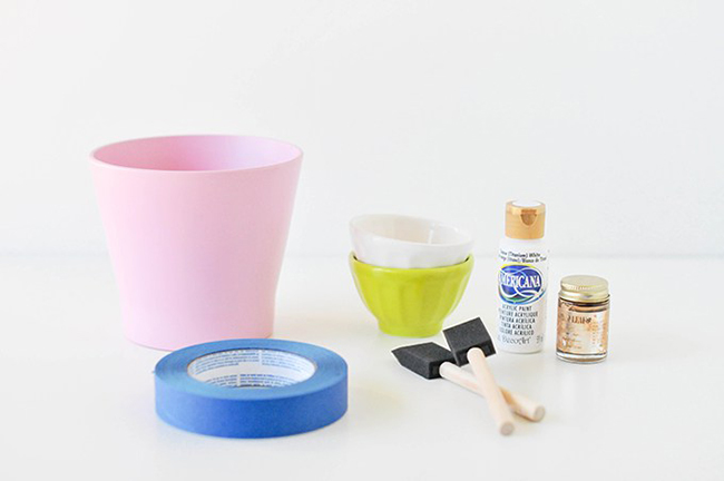 Chalk Paint de los colores que quieras pintar el macetero en este caso blanco y dorado