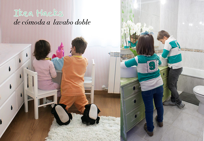 Estuvimos de tiendas viendo algún que otro mueble, pero cuando instalamos el nuevo escritorio de la princesa y tuvimos que quitar de su dormitorio esta cómoda de ikea, penmamos que podíamos darle una nueva vida... Lo que viene a ser un Ikea Hacks: De cómoda a lavabo doble para el baño.