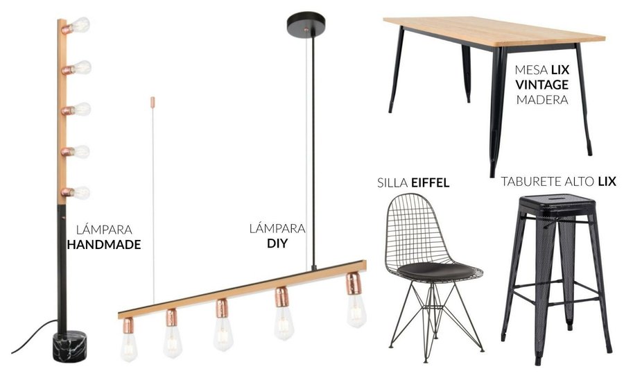 En este caso, y para hacer un homenaje al diseño industrial más tradicional, completamos el look con muebles en negro y madera. La mesa LIX VINTAGE, la silla EIFFEL y el taburete alto LIX son apuestas seguras si vuestro ideal decorativo son esos lofts neoyorquinos en los que tantas veces hemos soñado vivir.