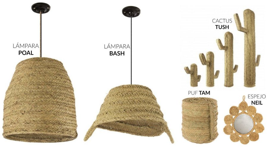 Por supuesto, ya sabéis que la decoración de las estancias debe ser coherente y, si optamos por una pieza tan especial como estas dos lámparas, se deben insertar complementos que ayuden a potenciar esa estética y armonicen el conjunto. En este caso, apostamos por el cactus TUSH, el puf TAM y el espejo NAIL... ¡Compañeros inseparables!