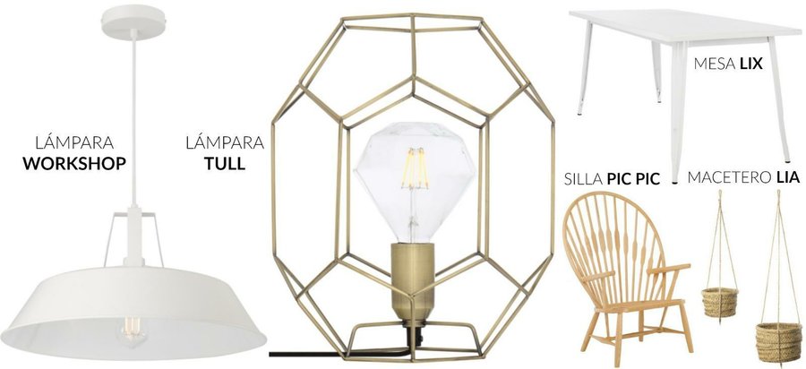 En los últimos años, no hay post de decoración que se precie sin alusión al estilo escandinavo. Pues bien, aquí va nuestra aportación a este refrescante estilo que sigue embaucándonos con su sencillez y luminosidad. La lámpara TULL de sobremesa en color dorado y estructura geométrica de hierro o el modelo WORKSHOP de color blanco son piezas básicas para recrear esta estética.